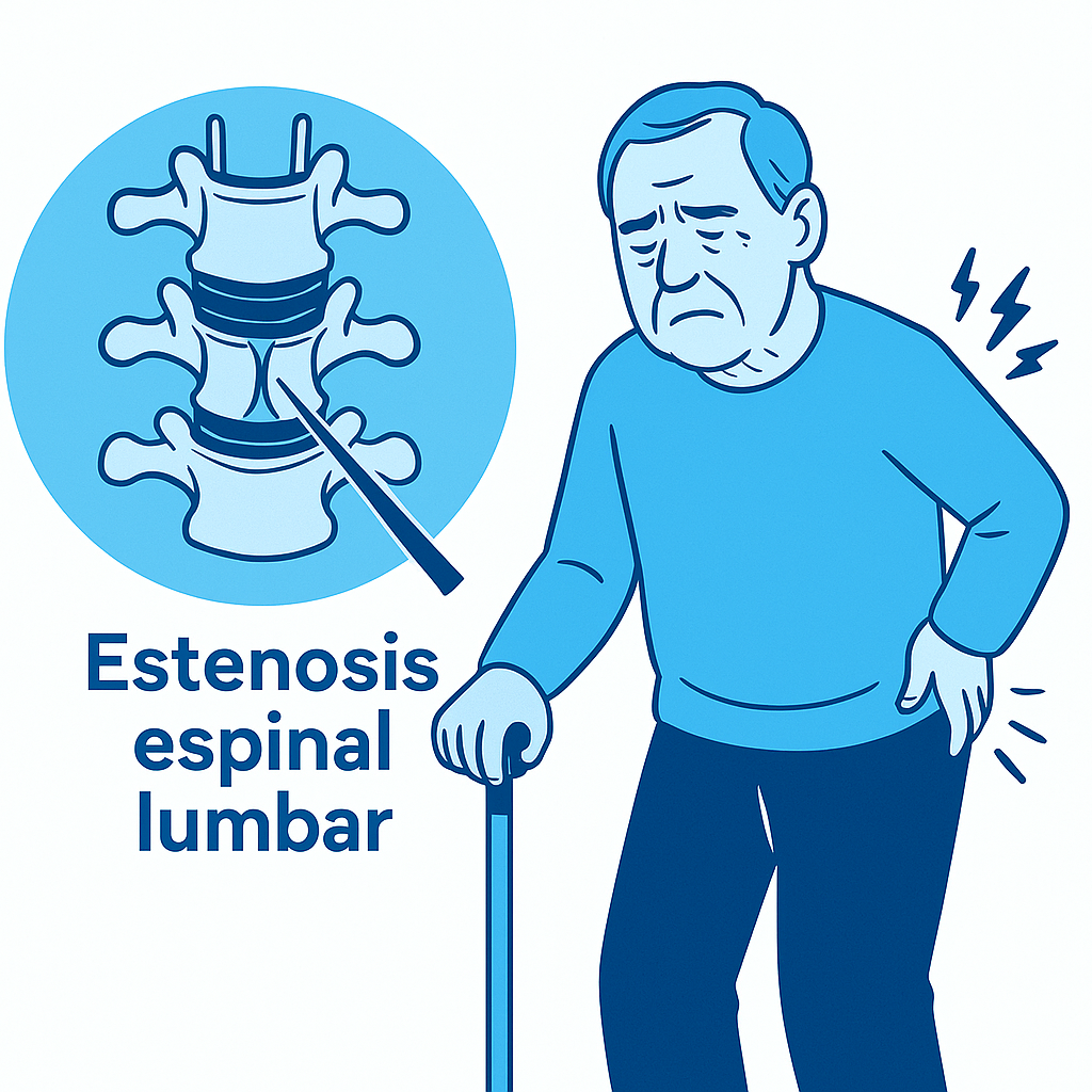 Estenosis espinal lumbar: alivio sin cirugía abierta https://ortopedistarobertoalbavera.com/2025/06/22/estenosis-espinal-lumbar-alivio-sin-cirugia-abierta/ https://ortopedistarobertoalbavera.com/2025/06/22/estenosis-espinal-lumbar-alivio-sin-cirugia-abierta/#respond Sun, 22 Jun 2025 19:43:15 +0000 https://ortopedistarobertoalbavera.com/?p=248 La estenosis espinal lumbar es el estrechamiento del canal vertebral en la parte baja de la espalda, lo cual puede generar presión sobre los nervios que pasan por esa zona. Esta compresión causa dolor, debilidad o entumecimiento en las piernas, especialmente al caminar o estar de pie por mucho tiempo.